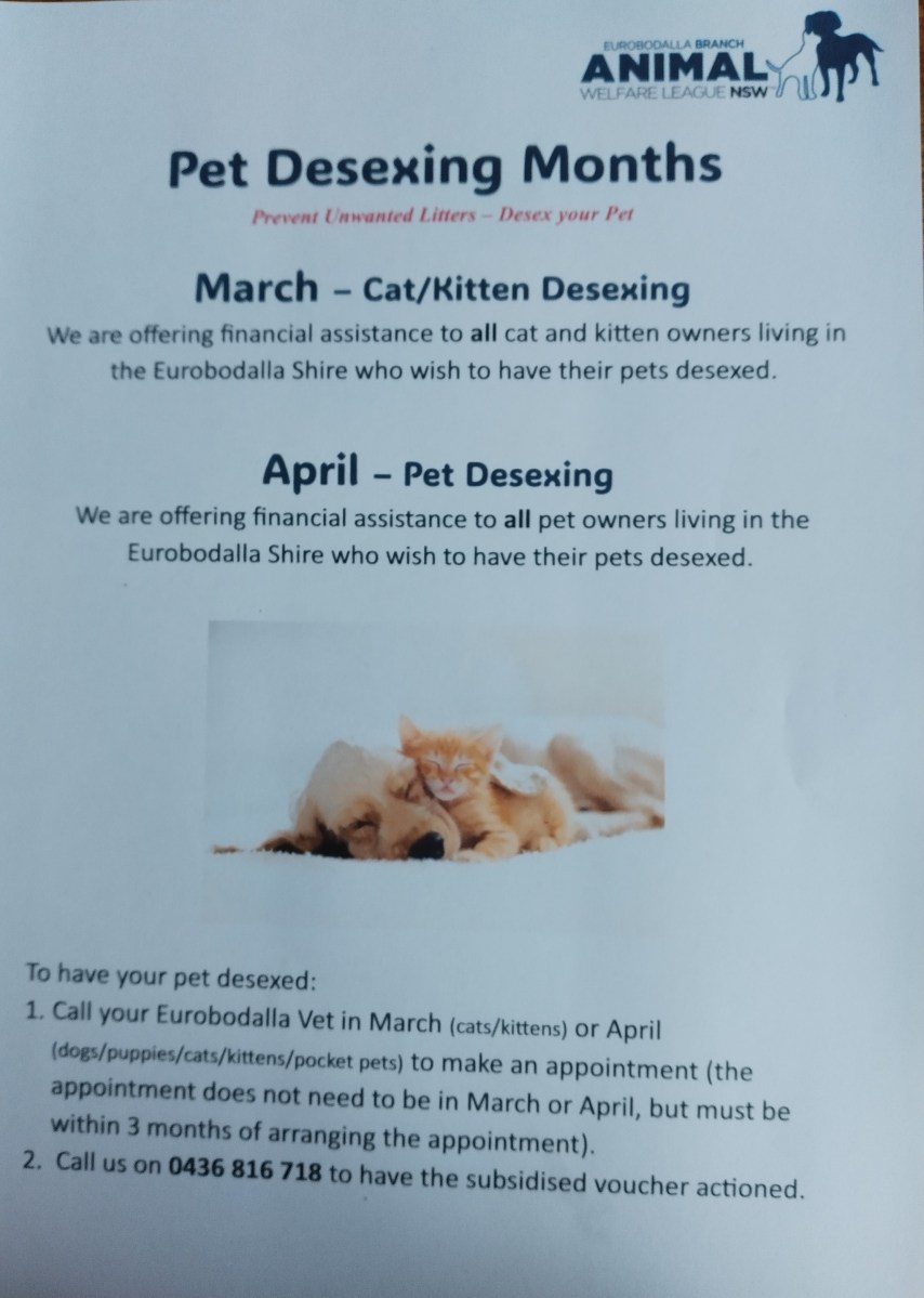 AWL Eurobodalla Desexing Promotion