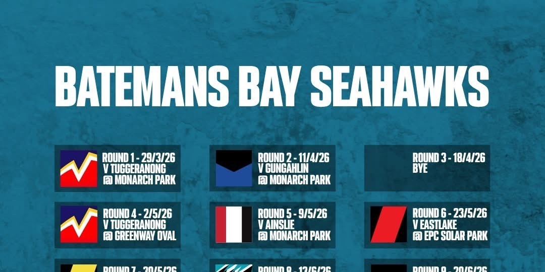 Seahawks to open 2026 season at home November 3, 2025 7:29 amThe draw has been released for the 2026 AFL Canberra Premier First Grade Competition. Batemans Bay to start the season...