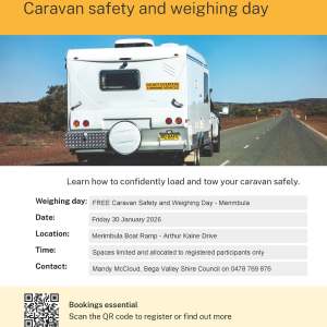 Bega Valley Shire Council are hosting a FREE Caravan Safety and Weighing Day. Assist caravan users who tow caravans to understand...