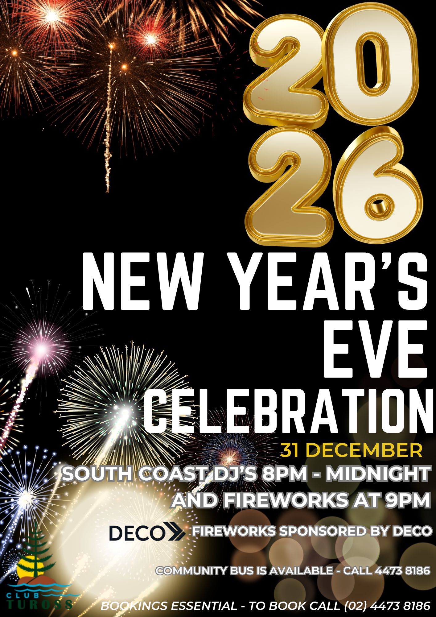 South Coast DJ’s from 8pm till midnight AND fireworks at 9pm!