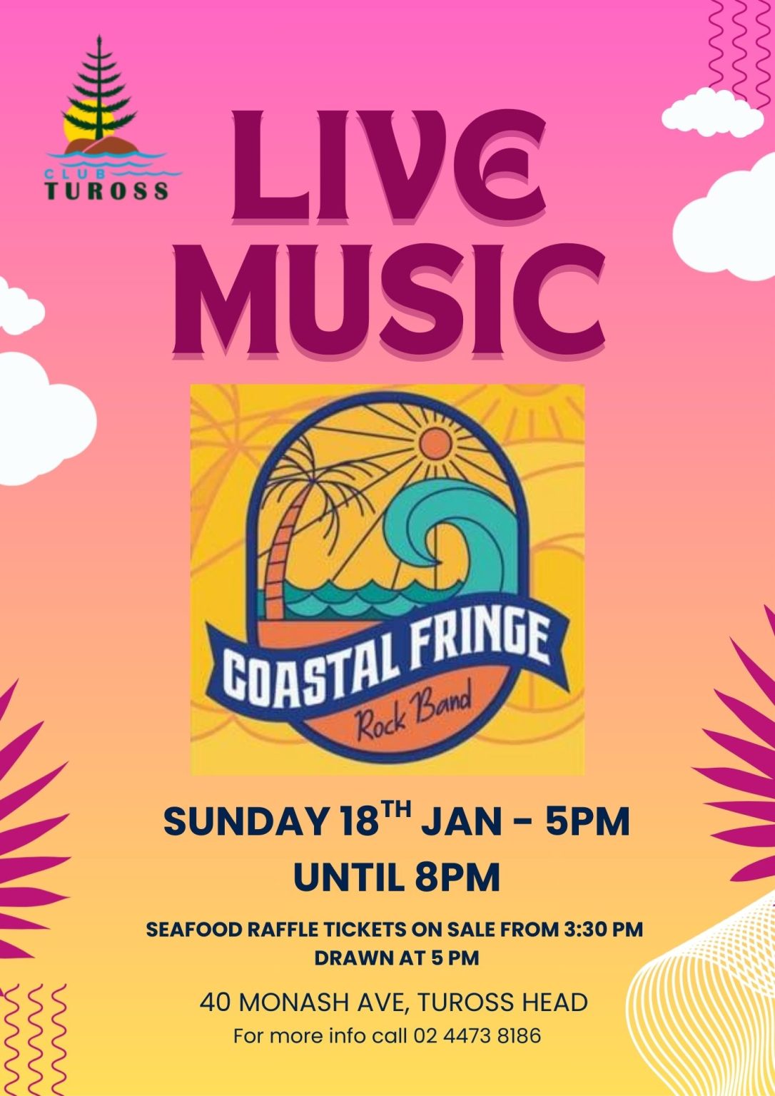 Join Club Tuross on Sunday the 18th of January with a performance from Coastal fringe and a seafood raffle!