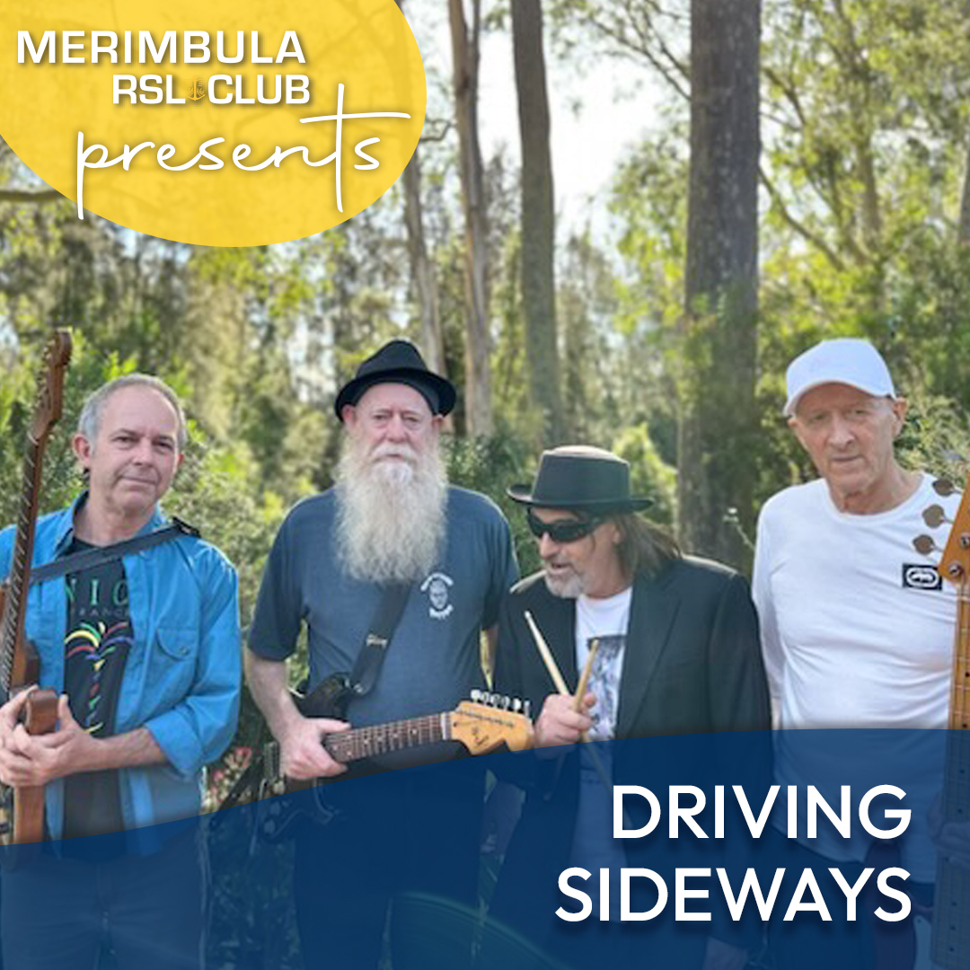Driving Sideways at Merimbula RSL Club Join Merimbula RSL and get down for a dance Back to Gig Guide Advertisement Date Apr 04 2026 Time 6:30 pm - 9:00 pm Cost Free Location Merimbula RSL Club 52-54 Main St, Merimbula NSW 2548