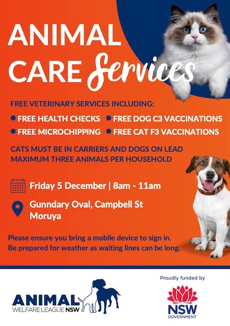 Animal Welfare League NSW will be hosting a session of free veterinary services including: