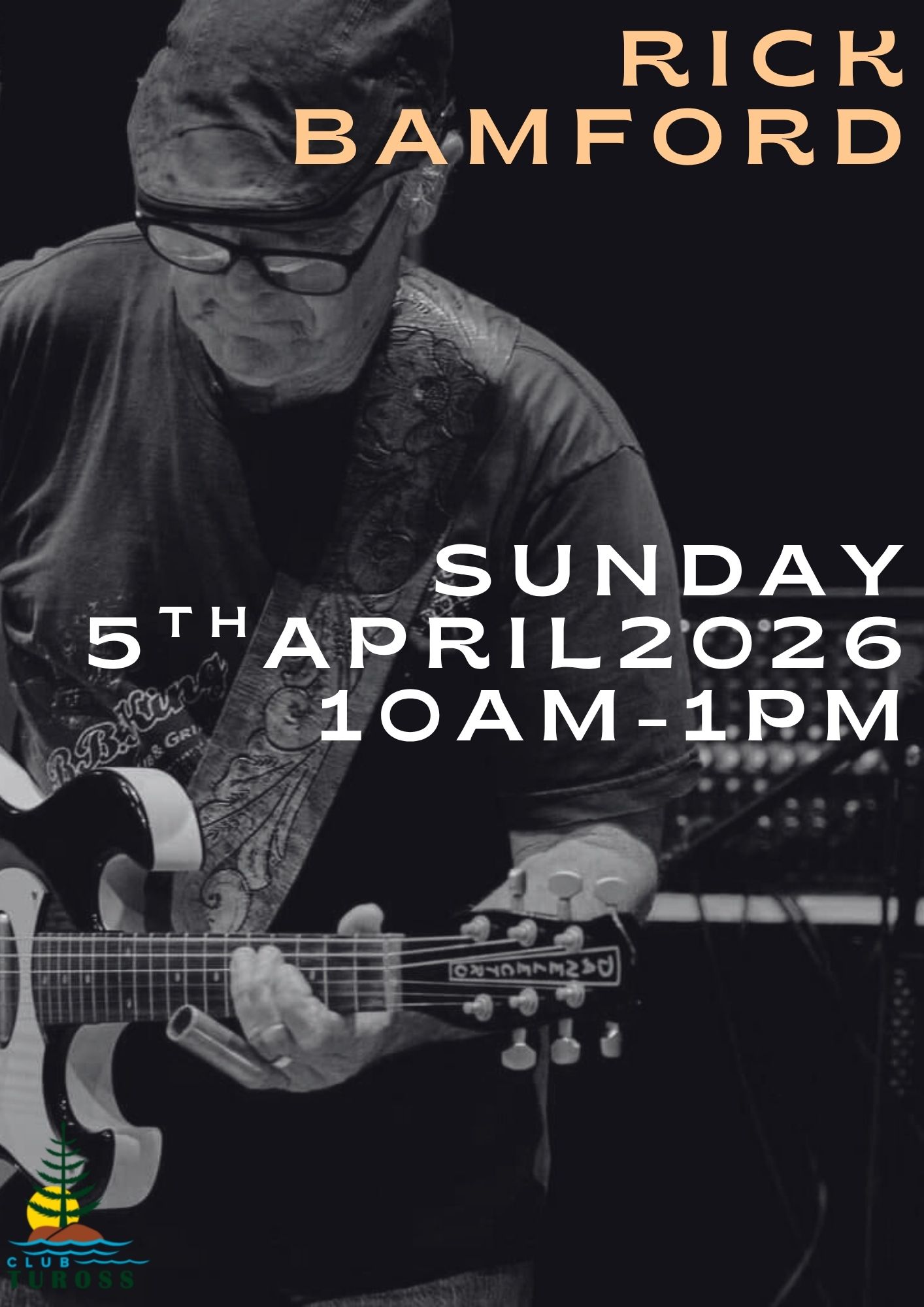 Rick Bamford at Club Tuross Join Club Tuross Easter Sunday and have a dance to Rick Bamford Back to Gig Guide Advertisement Date Apr 05 2026 Expired! Time 10:00 am - 1:00 pm Location Club Tuross 40 Monash Ave, Tuross Head NSW 2537